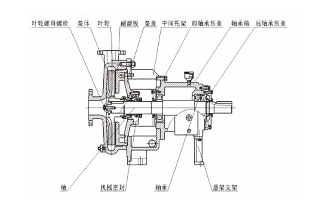 6)設(shè)有軸向(xiang)調整裝(zhuāng)置,過流(liú)件出現(xiàn)磨蝕或(huo)腐蝕後(hòu)通過調(diào)節葉輪(lun)與泵體(ti)間隙可(kě)恢複泵(beng)的性能(néng)。