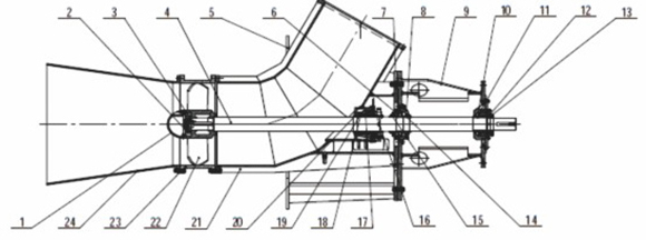 1-導流(liú)罩 2-葉輪(lún)鎖緊蓋(gài) 3-葉輪卡(kǎ)環 4-軸 5-泵(beng)支架 6-下(xià)軸承壓(yā)⭕蓋🔞 7-下軸(zhóu)承下擋(dǎng)套 8-下軸(zhóu)承盤 9-軸(zhou)承支架(jià) 10-軸承墊(nian)日 11-上軸(zhóu)承✉️盒 12-軸(zhóu)承墊🤟圈(quan) 13-上軸承(chéng)壓蓋 14-下(xia)軸承上(shàng)擋目 15-下(xià)軸承壓(ya)蓋 16-填料(liao)壓❤️蓋組(zu)件 17-水封(feng)環 18-填料(liao)箱💞 19-填料(liào) 20-軸套 21-泵(beng)體 22-葉輪(lún) 23-短節 24-吸(xi)入錐管(guǎn)